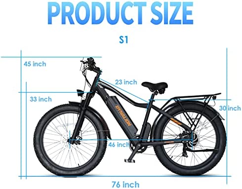 Dynalion 26" x 4" Fat Wide Tire EBike Adults 48V16Ah Li-ion Battery 750W Motor Front and Rear Disc Brake Shimano 7-Speed Derailleur Mountain Electric Bike UL Certified