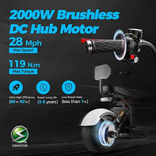 eAhora H10 2000W 37Miles Electric Motorcycle for Adults Street Legal, Spare Battery Space, 28MPH, 60V 20ah Lithium Battery, with Full Hydraulic Suspension, Hydraulic Brakes