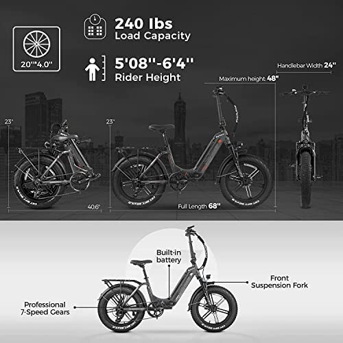 ✨✨[E-Bike For Comfort & Safety]: High-strength front suspension fork can effectively absorb shocks and better control the direction during riding. The puncture-resistant 20″x4″ fat tires provide excellent grip and superior shock absorption ability. The mechanical disc brakes provide greater stopping power, allowing for precise and instant braking even in wet weather.