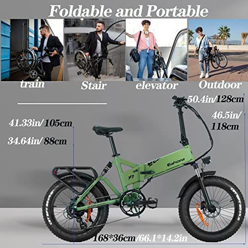 Eahora X7 Special 33Mph 750W Electric Bikes for Adults 48V 17.5Ah Removable Battery Electric Bicycles Shimano 8 Speed, Hydraulic Brakes 4.0" Fat Tire Folding Electric Bike
