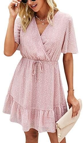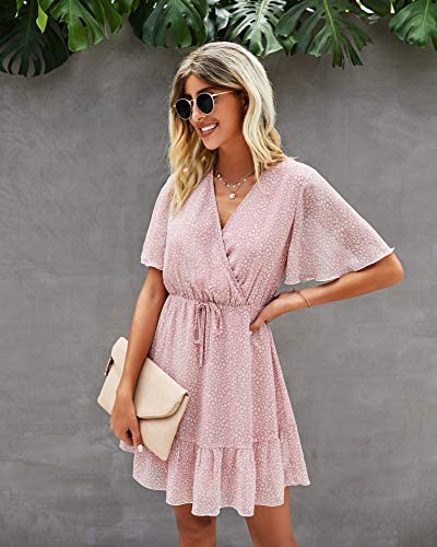 ECOWISH Womens Ruffle Costume V Neck Swing Summer season Quick Sleeve Floral Sundress Informal Mini Attire