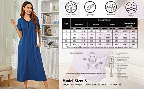 Full Size Nightgown is Elegant, Snug and Cozy. Ekouaer Henley Full Size Nightgown that includes gentle and stretchy knit quick/lengthy sleeve robe with button accents, pintuck pleating, flared hem, distinction trim.Traditional and Informal.