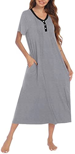 【Distinctive Design】This Henley Full Size Nightgown has ornamental button accents, pin-tuck pleating, flared hem, distinction trim. It’s very traditional and informal. As well as, the sleep shirt has two pockets which is handy to carry your smartphone, earphone, snacks, or different requirements.