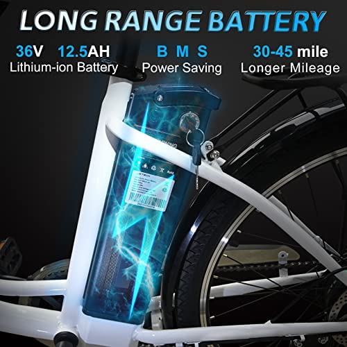 High-Speed Motor & Large Capacity Removable Battery – This electric cruiser bike equipped with 350w high speed brushless rear hub motor and 36V/12.5Ah large capacity lithium battery.At a range of 28-38 Miles long endurance with PAS,top speed up to 15.5 MPH,Max loading 246lbs.You can go faster and further in electric mode without breaking sweat,The more pedaling, the longer range & greater speed.