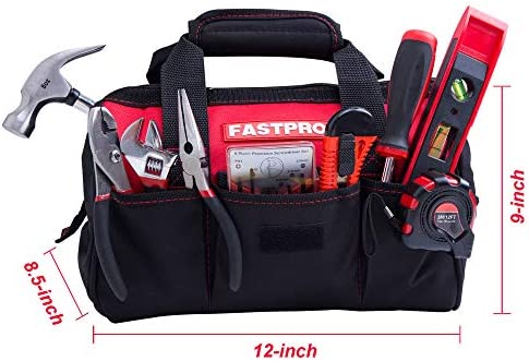 FASTPRO 215-Piece Home Repairing Tool Set with 12-Inch Wide Mouth Open Storage Bag,Household Hand Tool Kit,Red