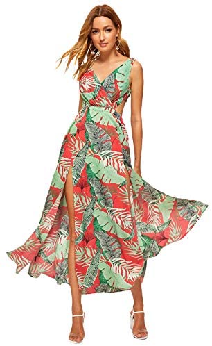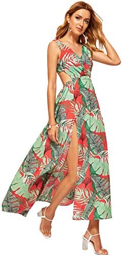 Sleeveless, V-neck break up, floral print maxi costume