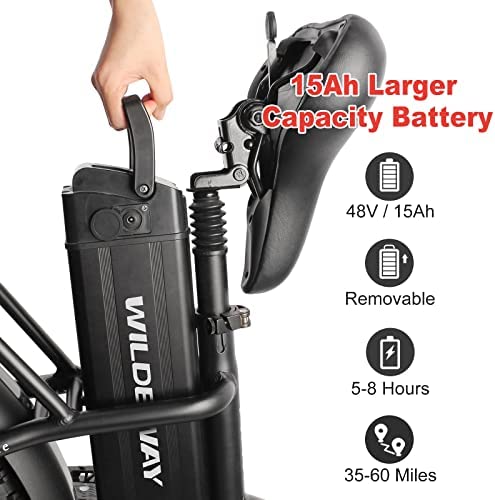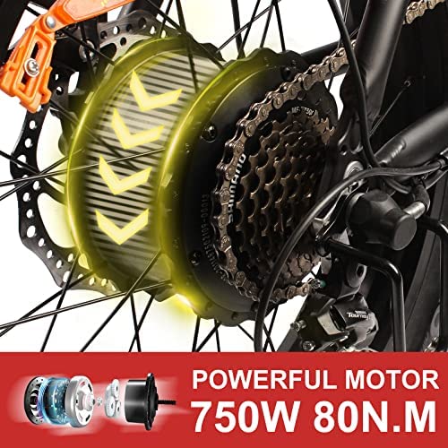 【750W MOTOR AND 15AH BATTERY】– 48V 750W high speed brushless gear motor (max output can be 1000W) provides great power at speeds up to 30MPH to help you get to the mountains or other off roads without stress, providing enough power for your daily needs to commute or explore with friends on weekends. Removable 48V 15Ah lithium battery is stable and high performance, guaranteeing the mountain bike can go up to 35-60 miles range, fast charging time for it is about 5-8 hours.