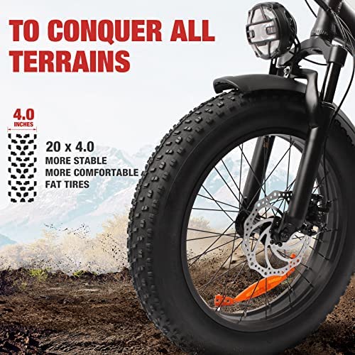 【FRONT SUSPENSION FORK COMBINED WITH 4.0 OFF ROAD TIRE】– The solid aluminum frame is equipped with a front suspension fork and saddle shock suspension system, with a sensitive response and can be smoothly handled, even if the road bumps can be smoothly through. Combined with 20” x 4.0” Fat Tires, all-terrain tires can be unobstructed on mountain, mud, snow and beaches.