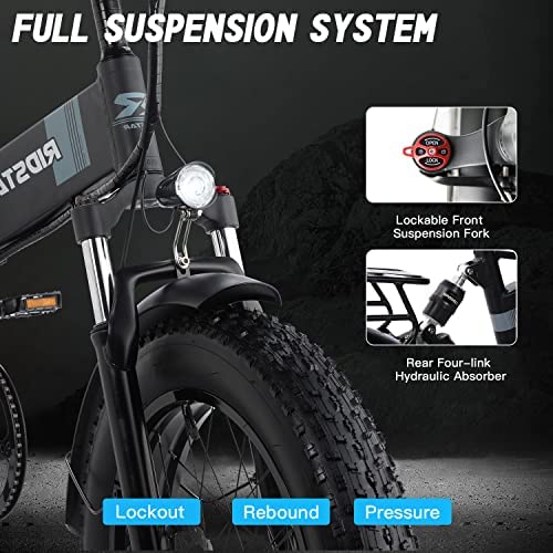 【Excellent Riding Performance】: This Folding electric bike frame is made of high quality 6061 aluminum alloy, more sturdy and durable. Equipped with professional SHIMANO 7 speed shift gear, more accurate and stable. High-luminance headlight and integrated taillight, LCD intelligent display, non-slippery 20”x4.0 all terrain fat tires electric bike, 3 riding modes and 5 levels of pedal assist, comfortable riding experience.