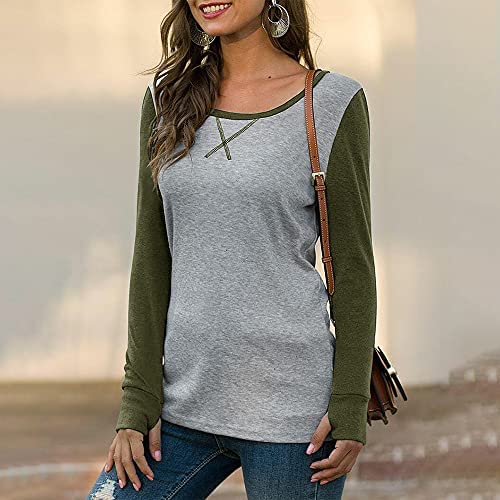 Options: Casual free match coloration block shirt, lengthy sleeve thumbhole baseball shirts, fall spherical neck tunic tops, style primary tees.