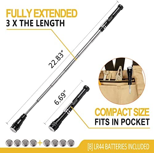 Powerful Magnetic Head and Base – The upgraded version of the strong magnets can help us easily retrieve dropped items such as screws, bolts, nuts, small metals, and debris with our magnet tool. It also features a strong magnetic base for hands-free use when placed on any iron area surface.