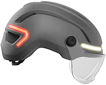STANDOUT STYLE WITH BOLD VISIBILITY. Choose to ride, choose to be seen. The new Ethos Mips Shield is a revolution in transportation, with a clear, moIded eye shield that stylishly adds protection from the elements while still allowing riders to use their existing eyewear. (The Ethos Mips Shield also is available without eye shield as the Ethos Mips.) Its compact and stylish form features the added protection of Mips Protection System highlighted by integrated LED front white lights, rear red lights, and amber turn signals, all controlled via an intuitive handlebar remote. The entire system is USB-C rechargeable with an estimated run time of 10 hours in low-blink mode and 5 hours in the high-blink mode, which delivers 45 lumens front and 30 lumens rear. Helmet and remote can be fully charged in just 2 hours and 1 hour, respectively. Despite the added technology, in-moId construction keeps the weight manageable, full hardbody coverage adds durability, and a Roc Loc Mips City fit system plus quick-dry padding ensure comfort. Whether you’re a dedicated bike commuter, running the kids to school on your e-cargo bike, or simply looking for added visibility as you ride around town, the Ethos Mips Shield is a look into the future.