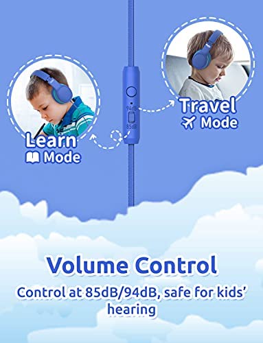 [In-line remote & 85/94dB Volume Limit]:1-Button control, including play/pause/answer/hang-up, next track/previous track. The toddler headphone adopt volume limiter(85dB/94dB) to protect vulnerable and sensitive ears of kids. Let your child love what they’re listening to, at a safe volume.