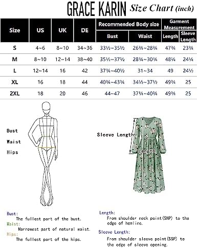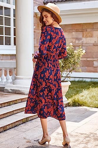 GRACE KARIN Women’s Long Lantern Sleeve Floral Dress Ruffle Flowy Aline Dress