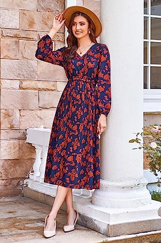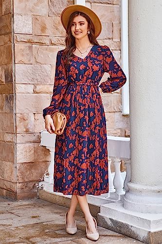 GRACE KARIN Women’s 2023 V Neck Floral Dress Boho Casual Pleated Dress