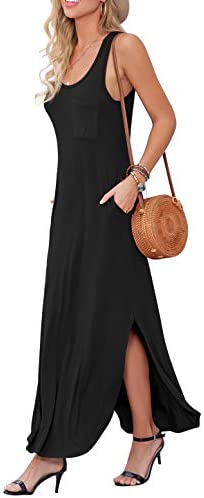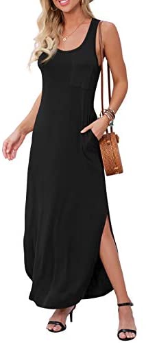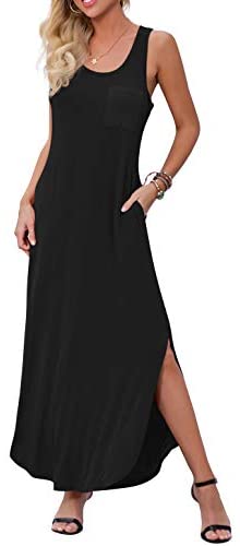 Women's Casual Fit Long Dress Sleeveless Racerback Split Fashion Summer Maxi Dresses with PocketWomen's Casual Fit Long Dress Sleeveless Racerback Split Fashion Summer Maxi Dresses with Pocket