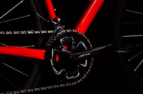 Drivetrain: Equipped with the new 2×11 speed L-Twoo R9 group set, it provides a huge range in gearing that allows you to find an optimal pedaling speed going up or down hill. Featuring separate paddles for up or down shifting, the chance of switching into the wrong gear has been greatly reduced. The two shift paddles are also pretty intuitive if you have not ridden on a bike with drop style handlebars. This also allows you to keep your hands on the hoods and near the brakes levers at all times.