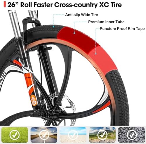 【Professional drive train】 21 Speed drive train , a wide range of gears gives you more control for climbing,for room to get low on descents, corners and jumps.Dual disc brakes ensure enough stopping power even in wet environment.