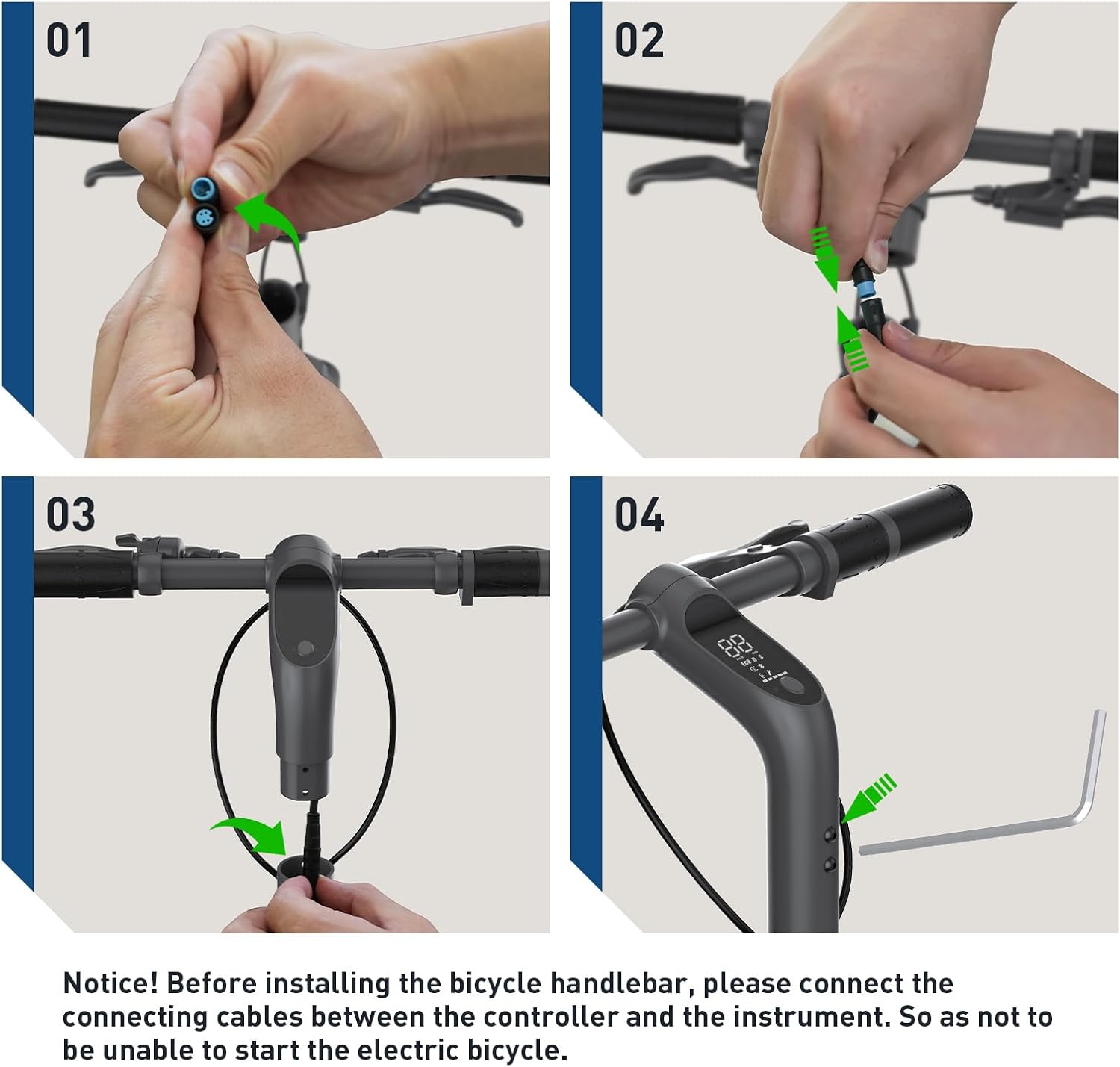 【Easy to Operate】This electric bike offers three riding modes for you to choose from. The clear display shows key information such as speed, riding mode, lights, range, and battery life. Notice! Before installing the bicycle handlebar, please connect the connecting cables between the controller and the instrument. So as not to be unable to start the electric bicycle.