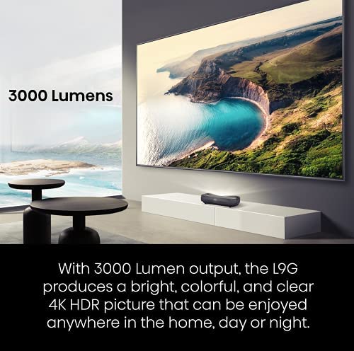 A Bright Picture in Any Room: 3000 Lumens. That’s right, the L9G shines with brilliance so all your 4K HDR content hits those shimmering highlights, vibrant colors, and voluminous blacks that make everything pop off the screen.