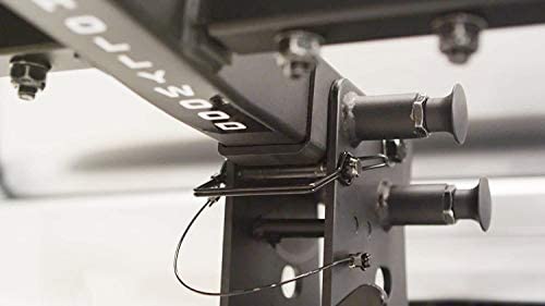 Includes keyed alike locking hitch pin with 8′ security cable to prevent rack sway, and locking frame hooks to deter theft
