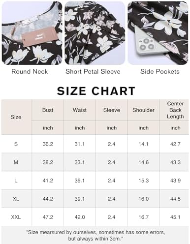 Women Casual Floral Dress Short Petal Sleeve Round Neck Swing Dress