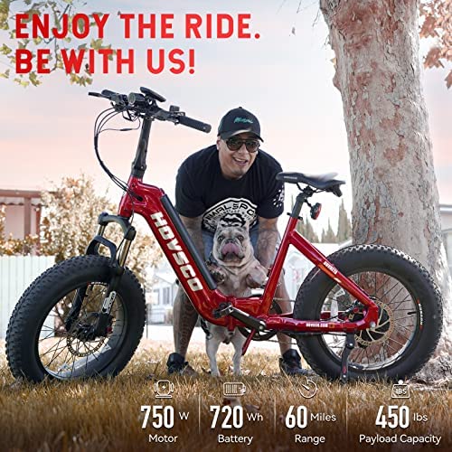 HOVSCO Electric Bike for Adults, Foldable 20" x 4.0 Fat Tire Ebike 750W Motor, 48V 15AH Removable LG Battery, Max Speed 28mph Adult Electric Bicycles, Shimano 7-Speed, APP Control, LED Strip Light