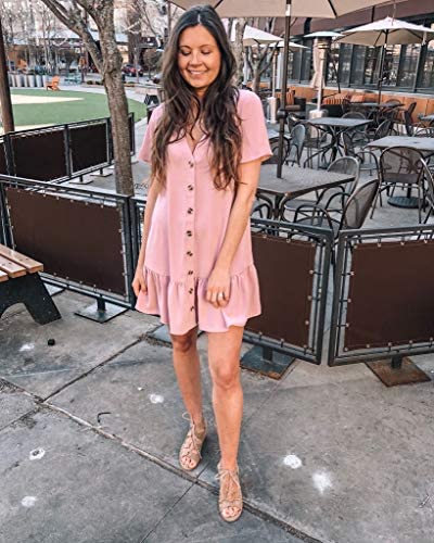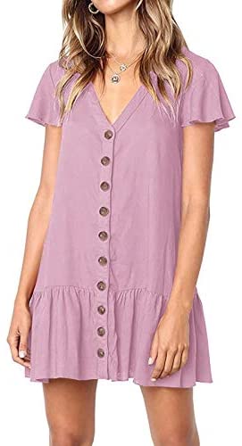 Match: This button down shirt gown with v neck, brief sleeve, not tight, mushy material. It’s also possible to put on it alone,is gorgeous and actions. Or as a tunic T shirt tops with leggings or jackets, may be simply gown up or gown down.