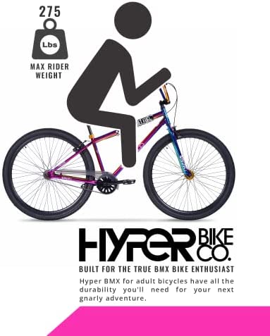 Gold BUILT FOR THE TRUE BMX BIKE ENTHUSIAST READY TO CONQUER THE MOST DIFICULT PUMP TRACKS. Hyper BMX for adult bicycles have a max rider weight of 275 lbs with all the durability you’ll need for your next gnarly adventure. parts