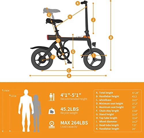FLEXIBLE COMMUTE – This lightweight electric bike has foldable handlebar and pedals.Not only easy to carry and store, its compact size allows you to move freely through traffic jams.The adjustable height seat makes the ebike suitable for people of 4’1”-5’5”, above 12 years old.It’s no wonder it’s the ideal choice for work commuting electric bike.