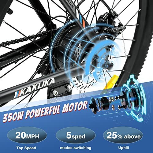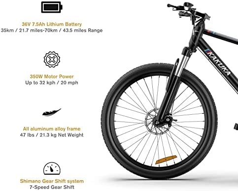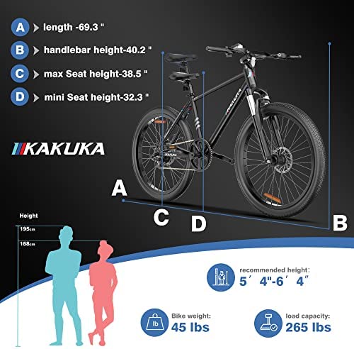 KAKUKA K26 Electric Bike 26″ Mountain Bike with 350W Moter Up to 20MPH, 40KM Range, 7 Speed Dual Shock Absorber Lockable Front Suspension Fork Electric Bicycles for Adults Motorized Bike
