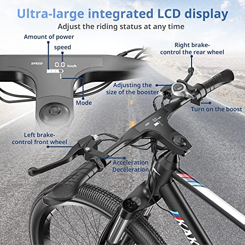 【Advanced Configuration】 Compared to traditional electric bikes, KAKUKA electric bike adopted an embedded LCD display that shows battery, assist levels, mileage, speed, and using time, allowing you to read your statistics with ease. It is also clearly visible at night and easy to operate. Also, the electric bike feature a lightweight aluminum alloy frame, anti-skidding 26″ tire, equipped with high brightness LED front lights and rear reflectors to ensure safe travel even at night.
