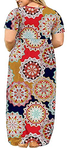 Kancystore Womens Plus Dimension Maxi Clothes Brief Sleeve Causal Summer time Unfastened Plain T Shirts Lengthy Gown with Pocket