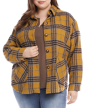 Karen Kane Plus Plaid Print Shirt Jacket-WomenPlus