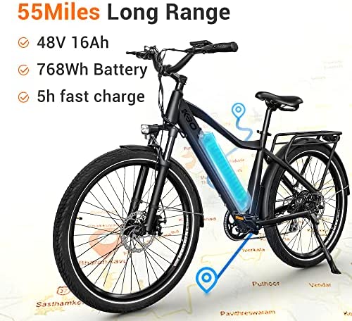 KBO Breeze – Commute Electric Bike for Adults, 500W Ebikes Up to 55MI with Removable 48V 16Ah Battery, 5H Fast Charge 25MPH City Commute Electric Bicycle with Shimano 7 Speed System