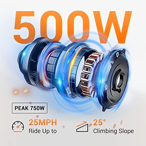 【Excellent Uphill Ability】KBO Brushless 500W motor(Peak 750w) provides a 25mph top speed and smooth riding even on 25° slope. Keep climbing without losing power, ride just like the breeze.