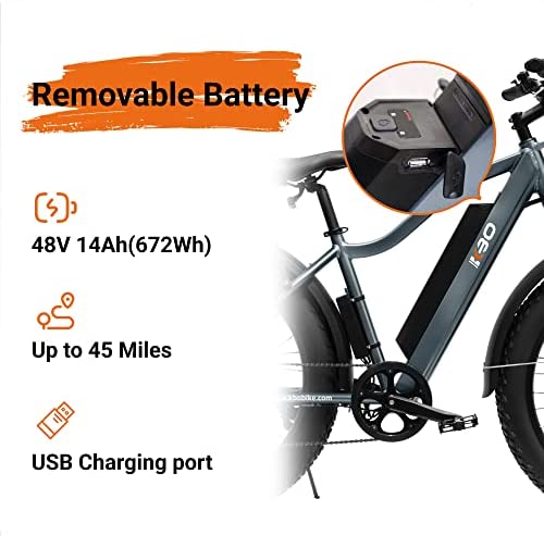 KBO Tornado Fat Tire Electric Bike, 500W 45Miles 48V 14Ah Removable Battery, 26×4 Fat Tire All-Terrian E-Bike for Adults, 25Mph, Shimano 6-Speed