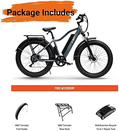 【Fat Tire Electric Bikes】KBO Tornado, updated the wheel size to 26×4”, which provides great shock and vibration absorbency. This gives you more suspension, comfort, and ease when traveling down long stretches of road or rugged mountains.