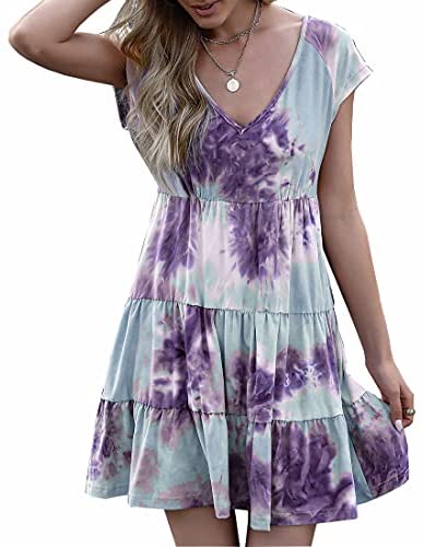 This mini tunic is made of sentimental material, is light-weight and breathable, permitting you to get pleasure from a cool model.Attractive deep V-neck, Brief Sleeve, ruffled match and flared kinds, Tie Dye Floral Print , elegant tunic size, free match, and translational hem, would be the good alternative in your snug every day put on.This informal v-neck costume will likely be simple to decorate up and costume up. It is extremely appropriate so that you can attend weddings, events, golf equipment, purchasing, courting, or put on it to work, workplace, enterprise, and even journey, trip, seaside, faculty and leisure locations.The short-sleeved tunic costume is manufactured from light-weight and light-weight supplies. You may put on it within the warmth of summer season, or match it with leggings, leggings, and spring boots. It appears stylish in autumn, and even with jackets, lengthy cardigans and sweaters, it’s tremendous snug, however Additionally road model.