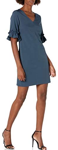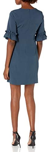 This straightforward shift gown in our florence material encompasses a ruffle sleeve that’s good for the workplace or dinner with pals