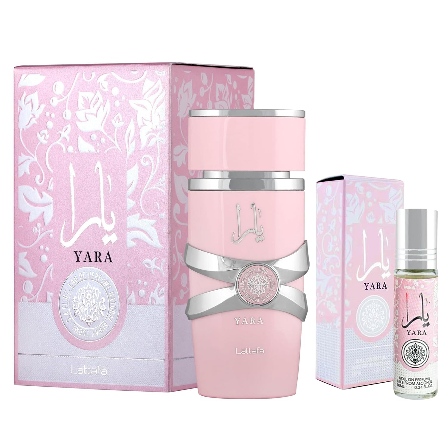 Lattafa Yara Bundle For Women: 3.4 Fl Oz EDP + Roll On Concentrated Perfume Oil 0.34 Fl Oz