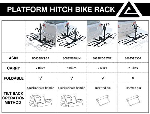 Leader Accessories 2-Bike Platform Style Hitch Mount Bike Rack, Tray Style Bicycle Carrier Racks Foldable Rack for Cars, Trucks, SUV and Minivans with 2" Hitch Receiver – Quick Hitch Pins Design