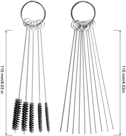 DIFFERENT DIAMETERS – These cleaning tools come with different diameters. 10 cleaning needles + 5 brushes, overall length: 4.53inch (115 mm), Cleaning brush diameters: 2mm, 3mm, 4mm, 5mm, 7 mm. Cleaning needles diameters: 0.4 mm, 0.5 mm, 0.6 mm, 0.7 mm, 0.8 mm.