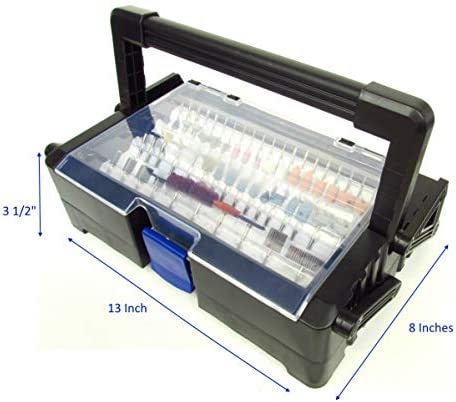 Comes with everything you need to get started using your rotary tool to takle any DIY project, all bits organized in a cool cantilever tool box, tackle box style organizer tool box.