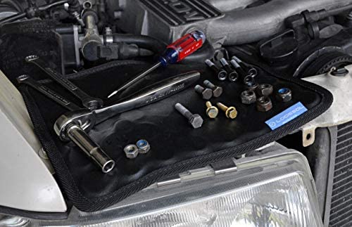 Reduces swearing and stress caused by misplaced or dropped tools and hardware. Perfect size for both tools and hardware keeping what you need within close reach. Spend less time being angry and more time getting your projects finished. Designed by an automotive enthusiast and made in USA with USA and imported materials to ensure you get the high quality product you want.