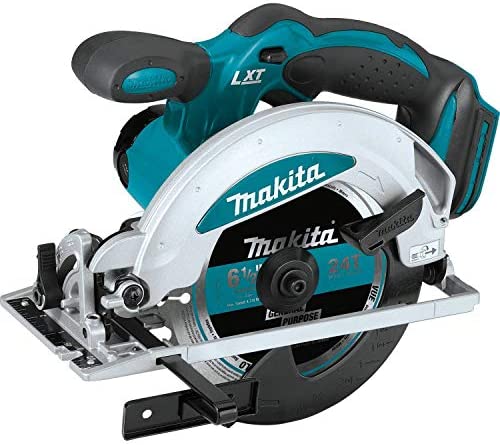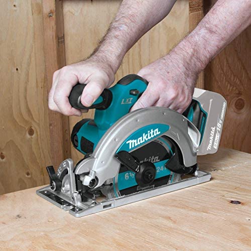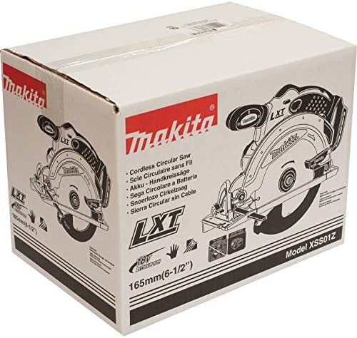 The Makita 18V LXT Lithium-Ion cordless 6-1/2″ Circular saw (model XSS01Z, Tool only) combines cordless cutting power with less weight in a compact size. The XSS01Z has a Makita-built high torque motor and a 2″ Maximum cutting capacity – the best in its class – making it ideal for woodworkers and finish carpenters. The XSS01Z features a Makita-built high torque motor that produces 3, 700 RPM for faster cutting. The saw has a 50 degree maximum bevel cutting capacity and is engineered with a stainless steel base plate for smooth, accurate cutting and added durability. The XSS01Z weighs only 7.6 lbs. (With battery, sold separately) with a more compact design at 14-3/8″ Long and an ergonomic shape that fits like a glove for reduced operator fatigue. The XSS01Z is also equipped a built-in L.E.D. Light that illuminates the work area for more efficient work, as well as a built-in dust blower to keep the line of cut free of debris. The blade wrench stows away for fast blade changing. The XSS01Z is a light, powerful cordless trim saw ideal for professional woodworkers and finishing carpenters. It’s also great for builders and other Pro trades making cuts overhead, in tight spaces, or through light material that does not require a standard size Circular saw. (Sold as a bare tool)