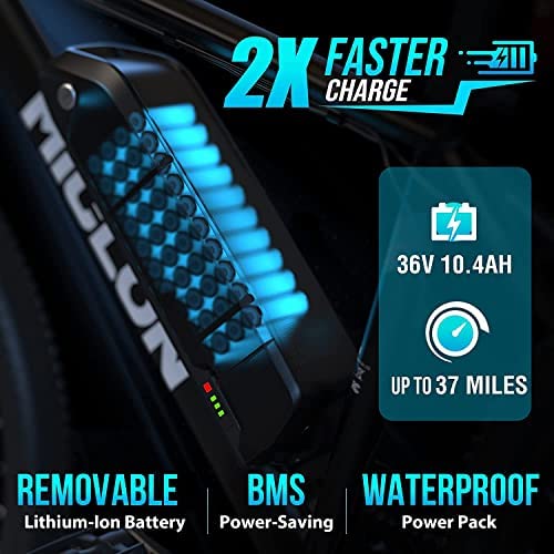 2X FASTER CHARGE: Featured with a 3H fast charging function, the UL Listed 36V/10.4ah lithium-ion battery allows you to wait only a little charging time before starting the next journey. Its large capacity also ensures a long range of 30-37 miles. And the battery is removable and lockable, convenient to charge on/off the bike