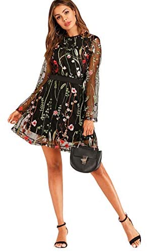 100% PolyesterMaterial: Polyester, cloth has no stretch.Function: Spherical Neck, Lengthy Sleeve, Quick Mini Costume, Cocktail Costume, Embroidery, Distinction Mesh, Black gown, Floral Costume, Social gathering Costume, Overlay DressSuggest handy wash chilly and grasp to dry, no bleach.Care: Hand wash with chilly water. Don’t bleach or tumble dry heat.Please discuss with the final picture or the dimensions measurement under earlier than ordering
