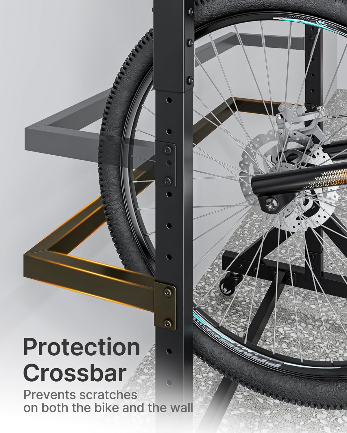 Adapt height (49″-78″) to fit any bike—protection crossbar prevents wall/bike damage!