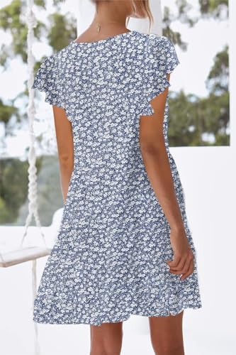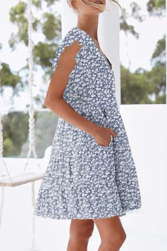 NCLOOK Women’s Ruffle Sleeve Dresses V Neck T-Shirt Dress Vacation Beach Dress